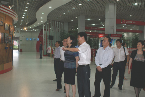 2011年8月24日下午,中國人民銀行黨委委員、副行長胡曉煉女士一行13人來到位于開發區經發大道的浪莎二期,集團公司董事局總裁翁榮弟陪同參觀了展覽中心。
