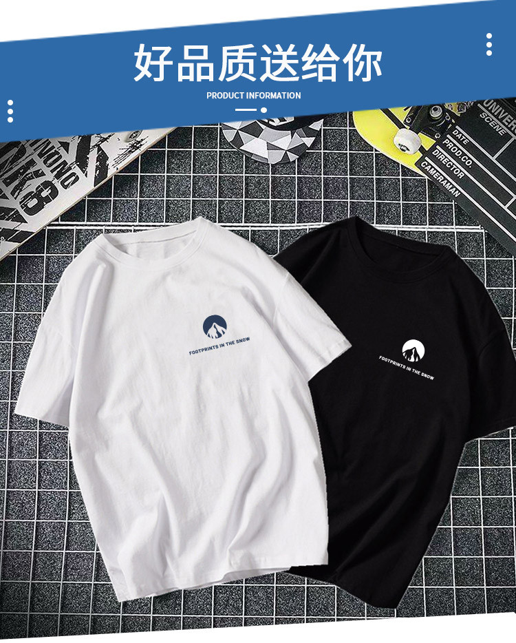 【100%純棉】2021春季爆款t恤男士韓版雪山印花短袖圓領T恤男