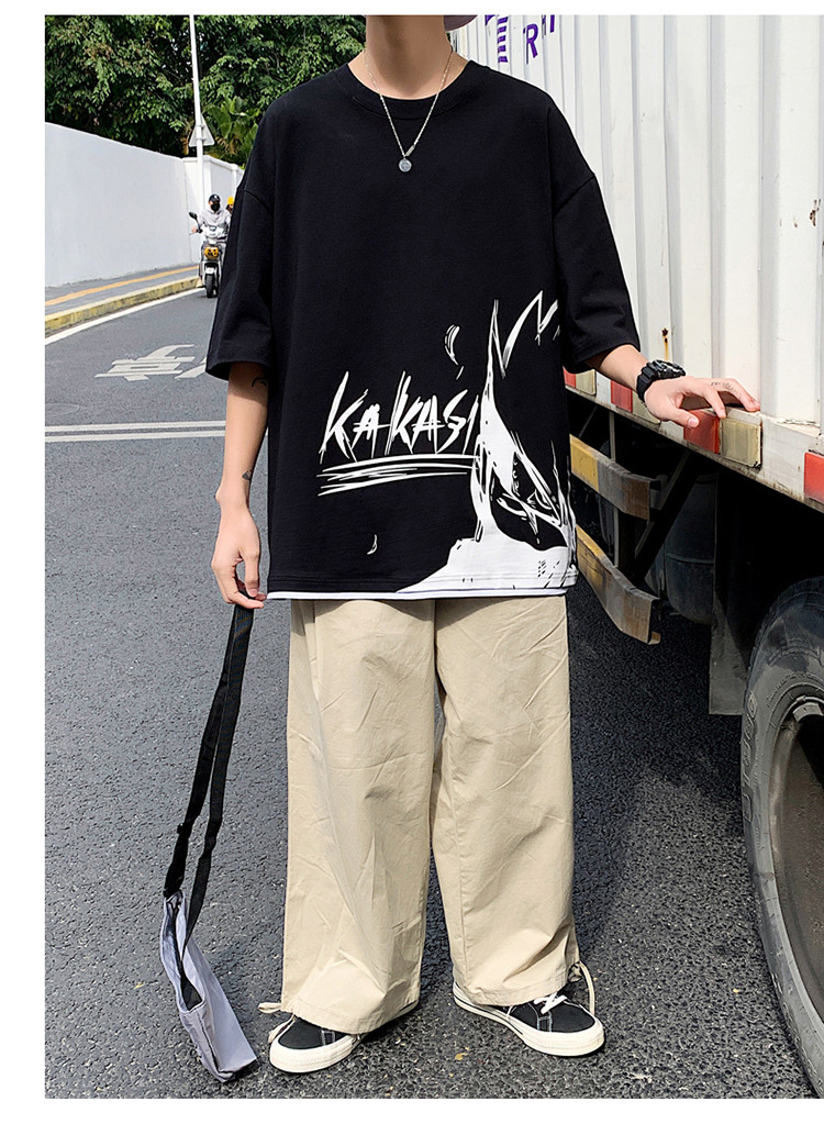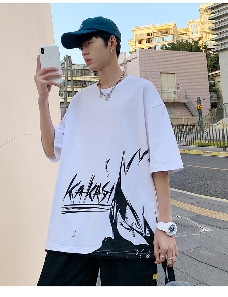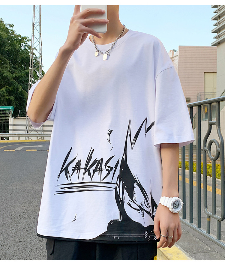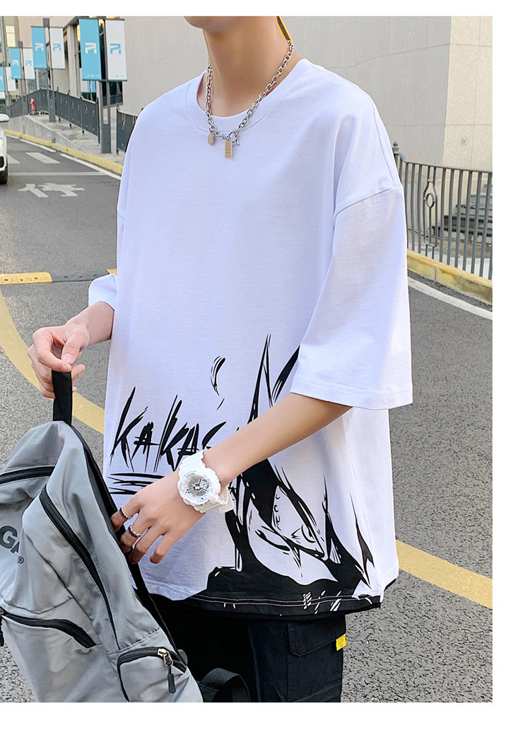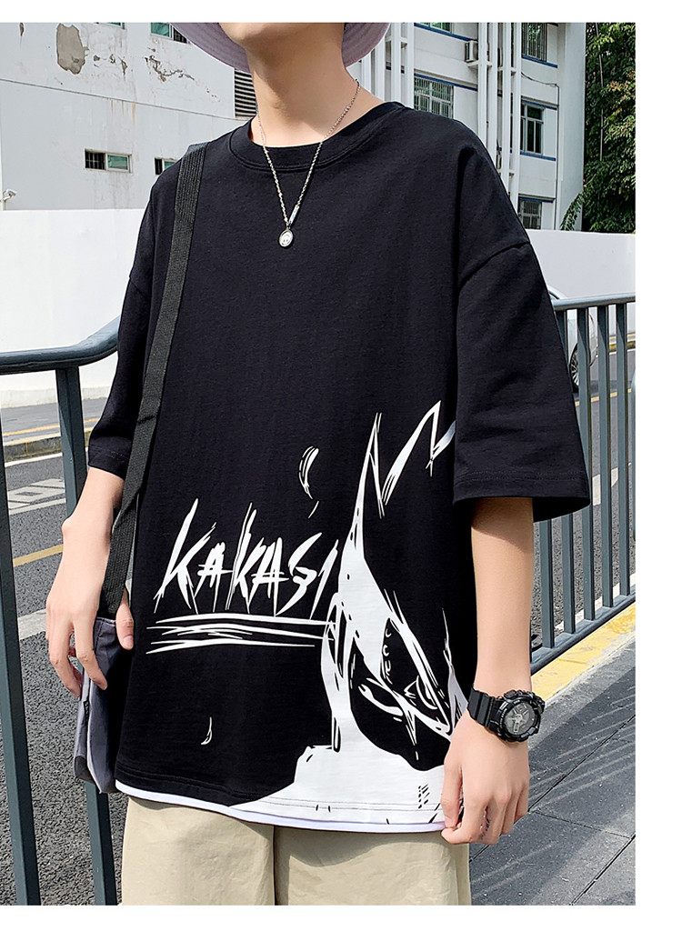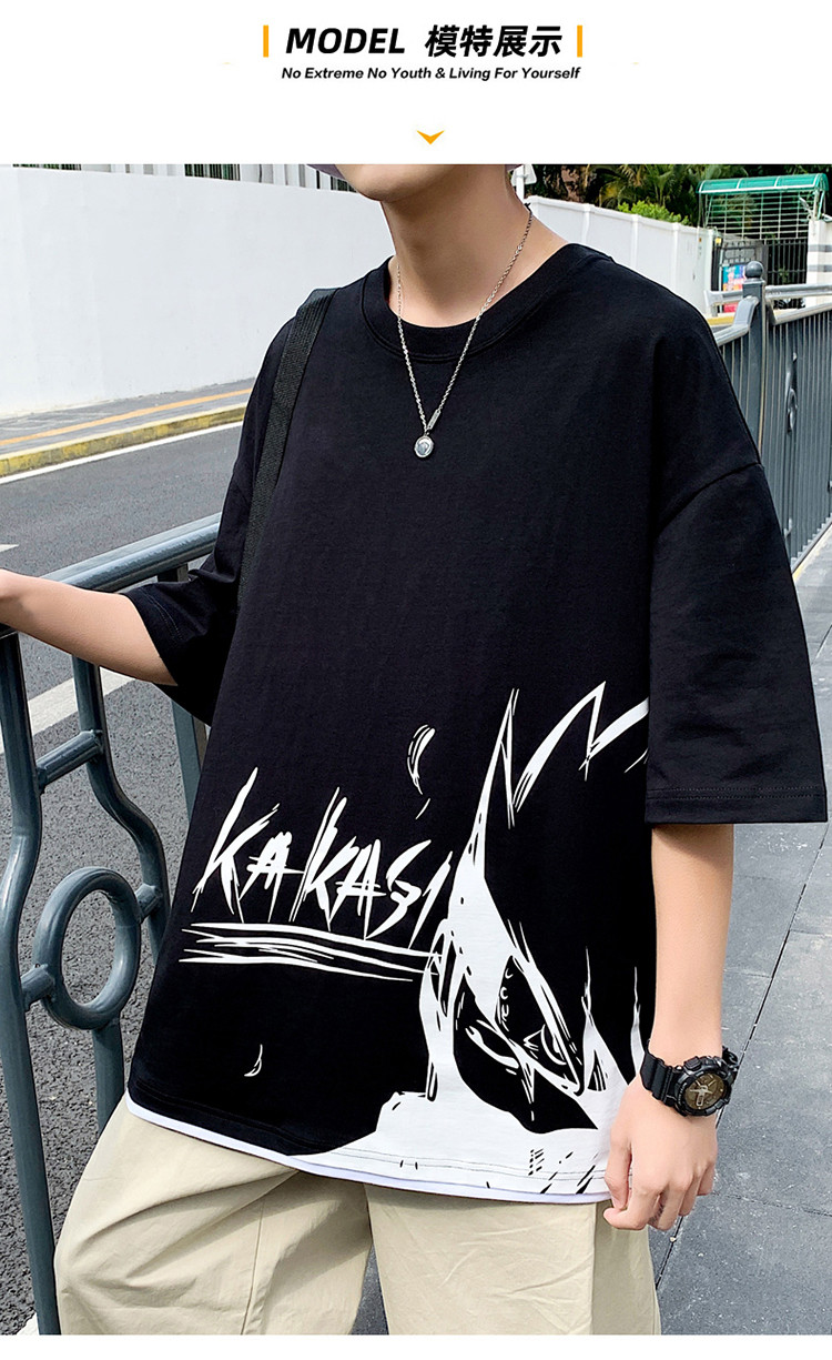 純棉舒適】夏季新款男士圓領(lǐng)短袖時(shí)尚火影印花半袖T恤