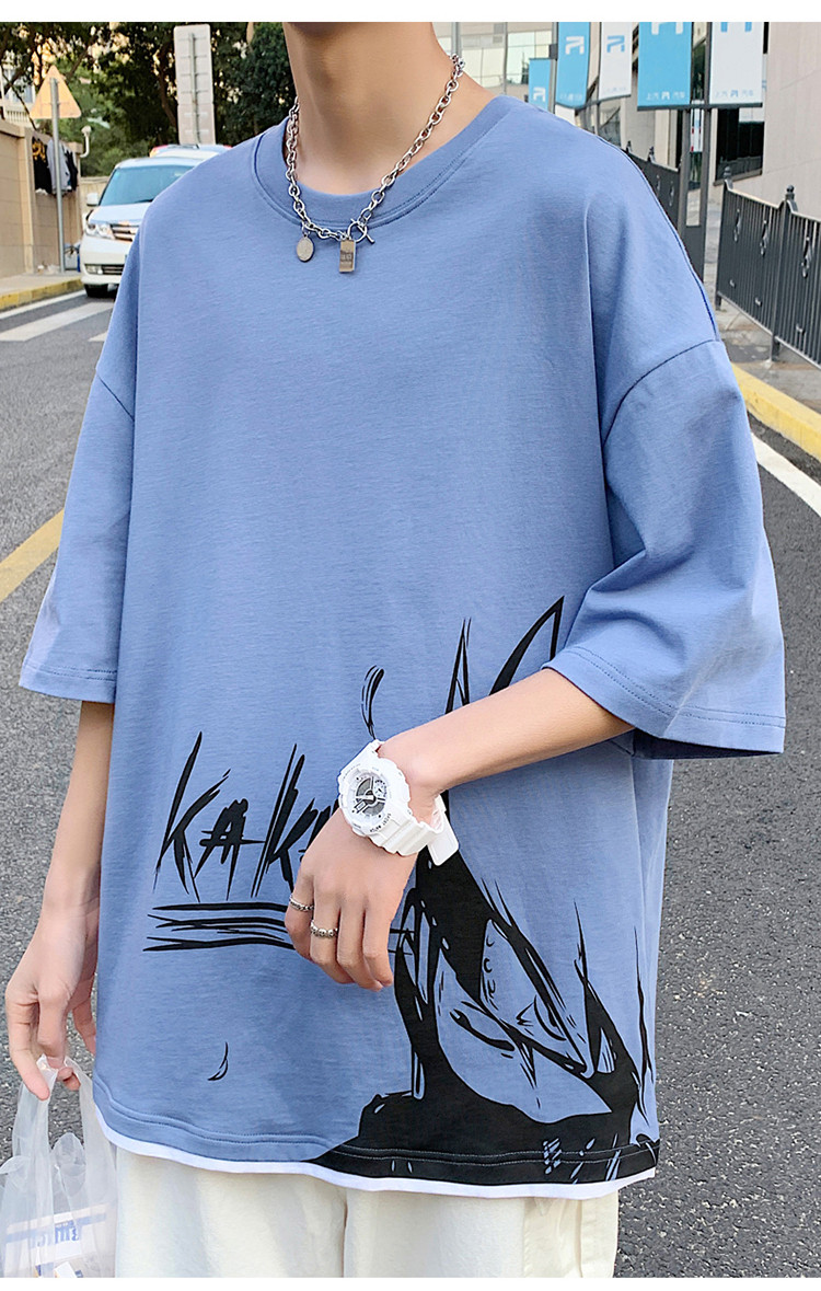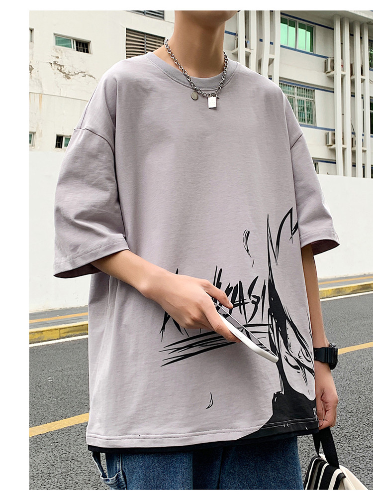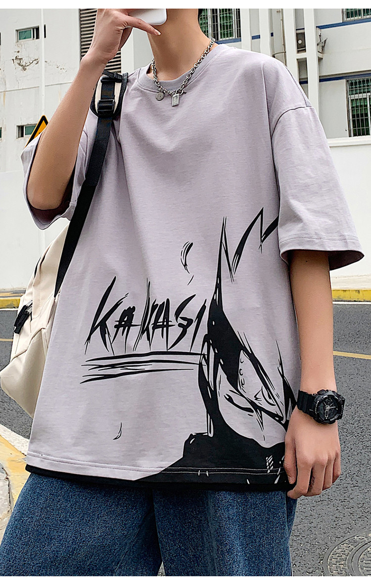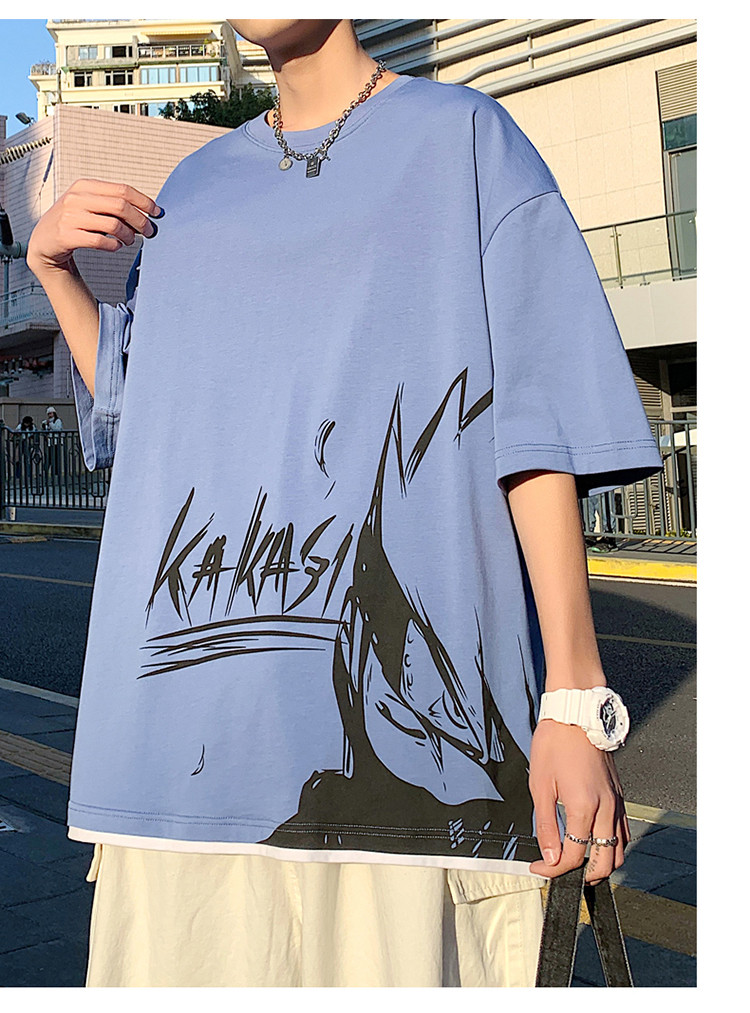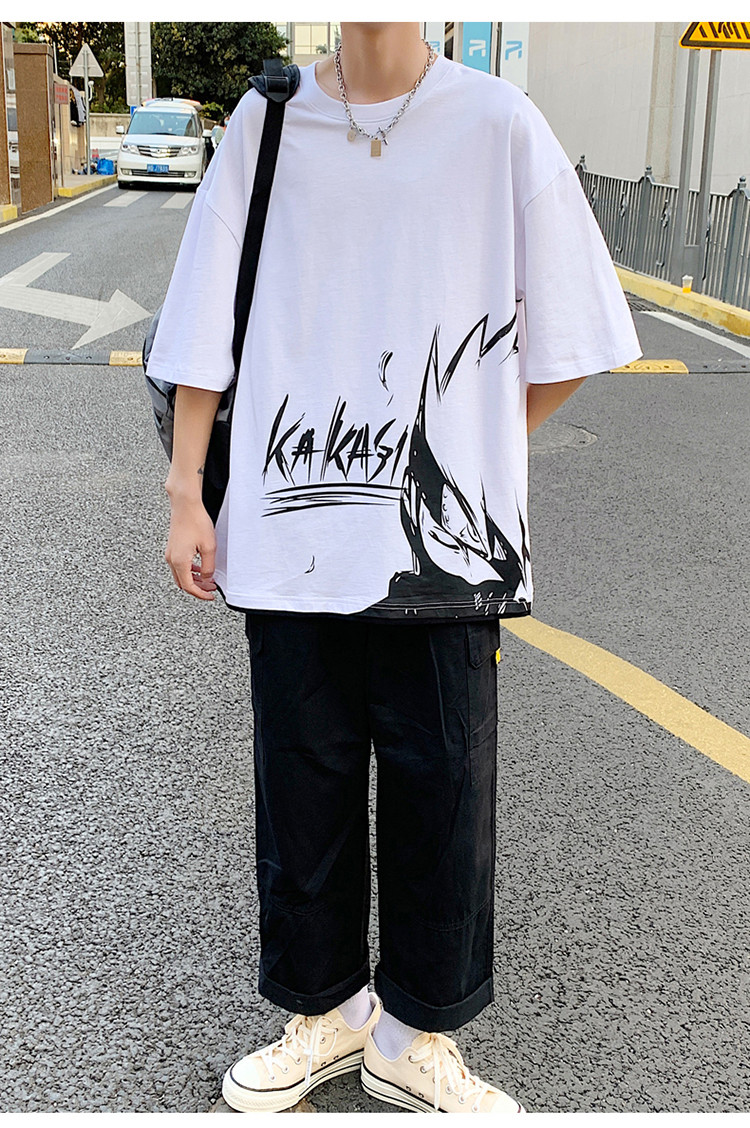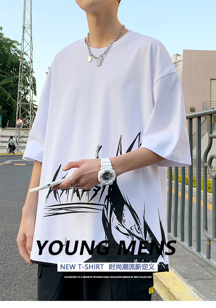 純棉舒適】夏季新款男士圓領(lǐng)短袖時(shí)尚火影印花半袖T恤