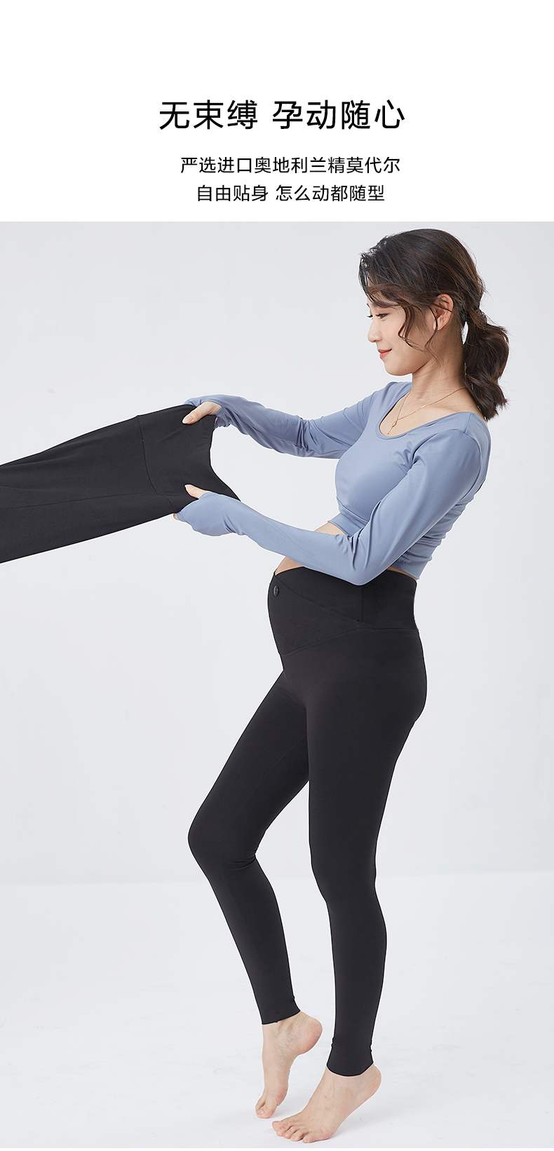 浪莎孕婦打底褲夏季薄款外穿莫代爾春秋季瑜伽九分長褲子時尚低腰