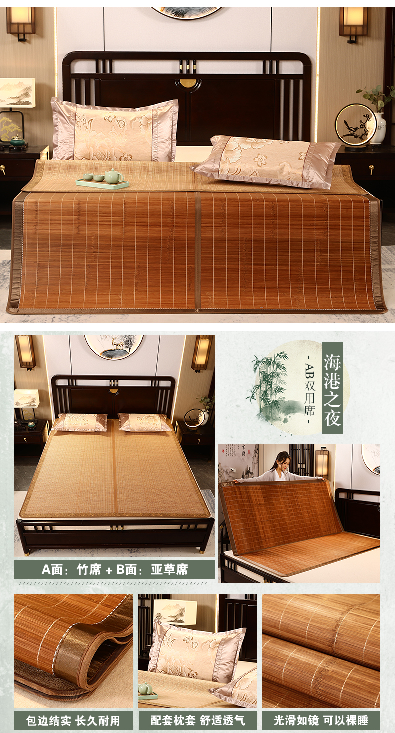 夏季碳化竹席可折疊席子單雙人宿舍1.5米1.8m床空調涼席雙面可用