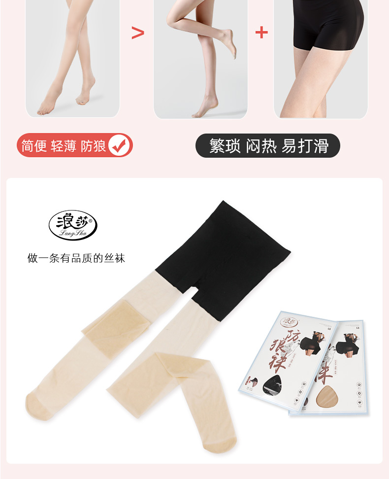 浪莎防狼絲襪女薄款夏天防勾絲防走光安全褲二合一春秋打底連褲襪