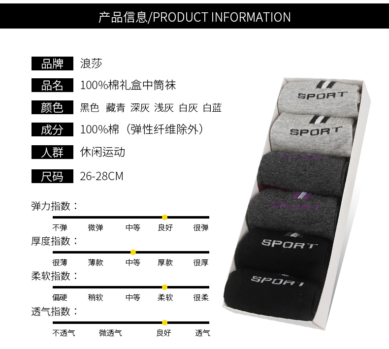 浪莎襪子男士純棉中筒襪秋季薄款吸汗運動籃球全棉春秋透氣短襪潮